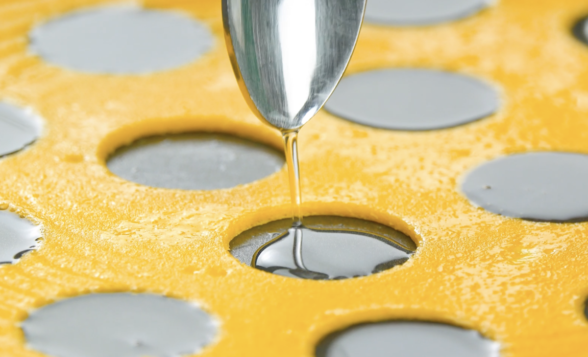 3.2 Use the larger end of a piping bag nozzle to cut small circles out of the cooked egg yolks.