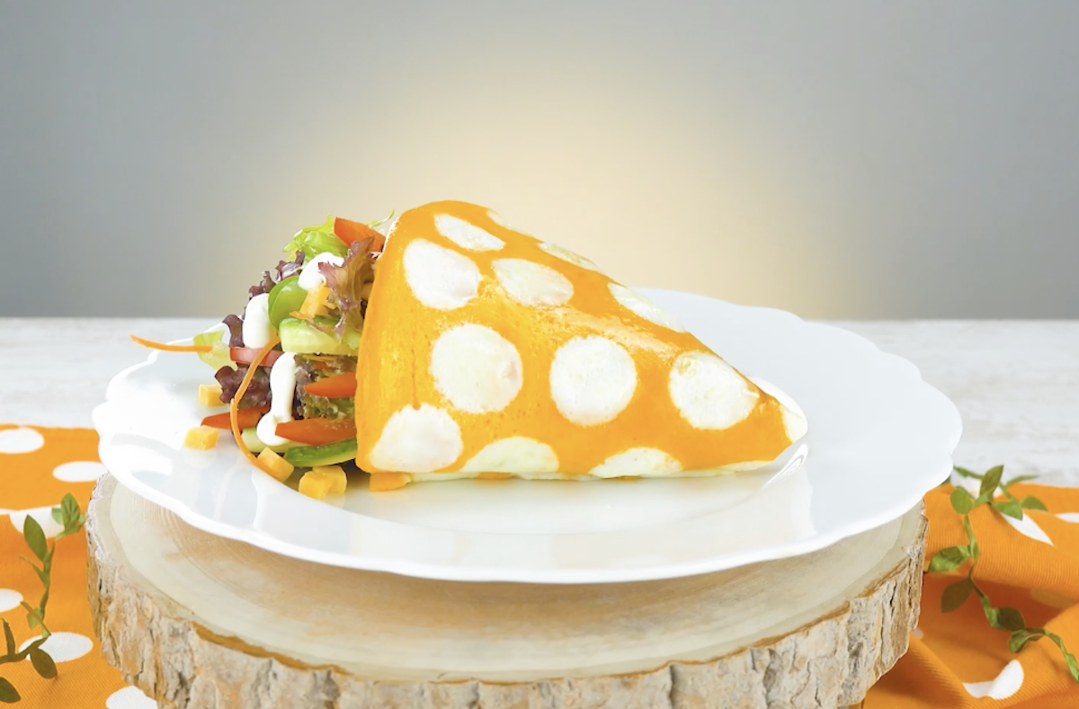 3.4 Fill the omelet with a garden salad and sauce or dressing for a fresh, fun breakfast treat.