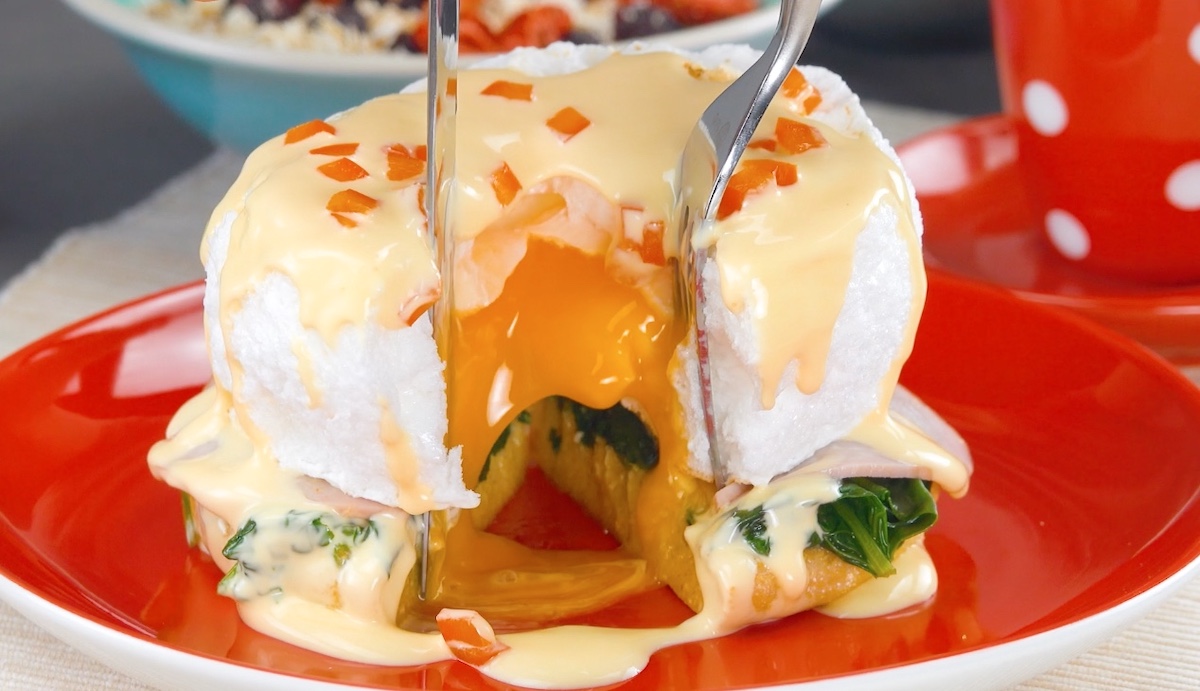 Almost every fridge is stocked with eggs because of how delicious, cheap, and versatile they are. Of course we love eating the classics like scrambled eggs, omelets, and fried eggs as part of a balanced breakfast, but we also think that eggs can do so much more! With these 4 easy egg recipes, you’ll learn how to transform your basic egg dishes into something really special. We’re going to prepare a delicious egg hot dog, complete will all of the best toppings, upgrade your standard eggs Benedict with a light and elegant soufflé, create a hot dog-stuffed egg-velope, and even make a fun vegetable rice & hot dog bow tie omelet! Once you try these 4 new recipes, those old egg dishes will seem like shells of the meals they could be!