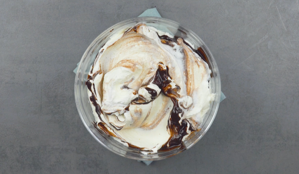 - Fold some chocolate syrup into the remaining vanilla cream, but don't fully combine the two ingredients.