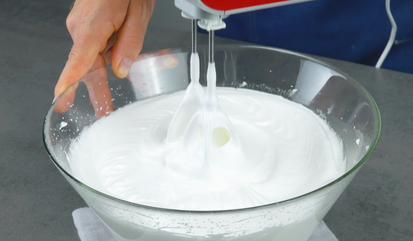- Preheat the oven to 325°F. For the chocolate cake, beat the egg whites until light and airy, then gradually add in the sugar until a firm meringue forms.