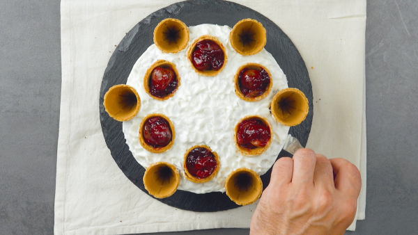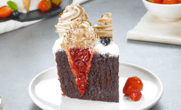 - Top off the cake with mixed berries and fresh mint, and it's ready to be served. Chocolate and cherries, ice cream and cake – all of the best dessert combos come together in this eye-catching cake!