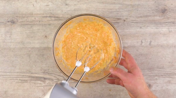 - Preheat the oven to 350°F. Peel and grate one carrot. Cut a peeled banana into small pieces and add it to the carrots. Separate two eggs and add the egg yolks to the bowl. Finally, mix everything together.