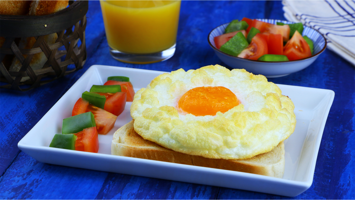 Everyone is familiar with a good old-fashioned fried egg. But if you’re interested in “fluffing” up your morning routine, then this recipe is for you: Serve your egg cloud on a warm piece of toast, and season to your liking. The day will certainly be off to a heavenly start!
