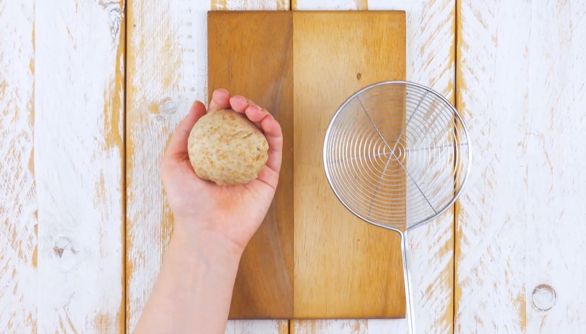 3.4 Deep fry the ice cream balls in hot oil for a maximum of 20 seconds. Let the oil drip off.
