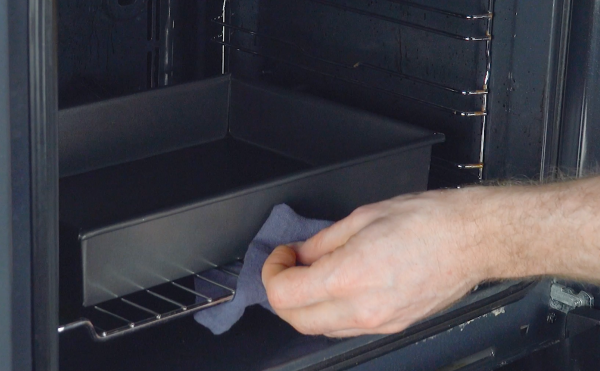 • Once the baking pan has preheated, remove it from the oven and turn the oven up to 475°F. Melt the cubed butter directly inside the preheated baking pan and pour in the cake batter. Transfer the baking pan to the oven and bake at 475°F for 10 minutes. After 10 minutes have passed, reduce the heat to 350°F and continue to bake the cake for another 15 minutes. Once the cake has baked, remove it from the oven and let it cool completely.