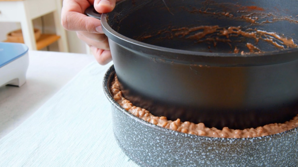 • Spoon the chocolate rice pudding into a round 12-inch cake pan and push the bottom of a slightly smaller pot into the rice pudding to create a well. Transfer the cake pan with the pot to a preheated oven and cook at 350°F for 20 minutes. Remove the pot from the cake pan and let the chocolate rice pudding cake cool for 1 hour.
