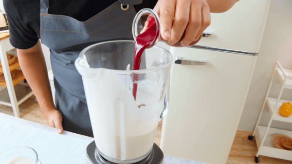 • Divide the rice pudding mixture in half. Add half of the rice pudding mixture to a blender, along with the cherry puree, and blend until combined.