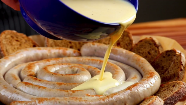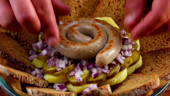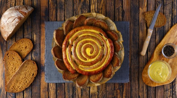 When the sun’s out, there’s nothing better than firing up the grill and inviting a few friends over to enjoy the spoils from your latest trip to the butcher. Say what you like, but sausages taste best straight off the barbecue — you just can’t beat the smokey aroma and crispy finish that has you coming back from seconds (and thirds!). But sadly the weather doesn’t always like to play ball, so we need to come up with a decent back-up plan to ensure good meat doesn’t go to waste. To alleviate disappointment on rainy days, we often turn to pie as a source of comfort, so why not make one that captures that great smoky, sausage flavor? Here’s one big enough to share with all your friends and family. All you’ll need is half a loaf of bread, rope sausage, and some of your usual BBQ condiments to create this hearty delight.
