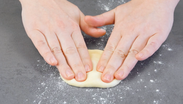 - Take a handful of dough, form it into a ball, and press it flat. Repeat the same process with the rest of the dough.