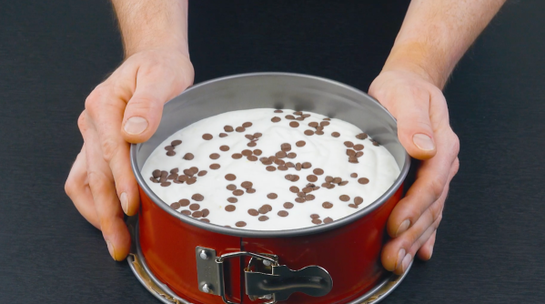 - Preheat the oven to 350°F. For the orange cake, beat together the egg whites, vanilla extract, and pinch of salt in a large mixing bowl until combined. Gradually add in the sugar and continue beating for about 5 minutes, until the mixture becomes smooth and glossy. Stir in the vegetable oil, milk, and orange zest, then sift in the flour. Pour the orange cake batter into the 7-inch springform pan and sprinkle the chocolate chips on top. Lightly tap the springform pan on your work surface so that the air bubbles escape from the batter and it's evenly distributed in the springform pan. Transfer the springform pan to the oven and bake the orange cake at 325°F for 40 minutes. Once the cake has baked, remove it from the oven and let it cool for 1 hour.