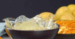 • Mix the potato water with the starch. Heat the water while stirring until the stock becomes clear and gel-like. Tip: Wait until the potato stock has become lukewarm and pour it through a clean dish towel before mixing it with the starch and heating up. This guarantees there will be no pieces of potato in your transparent chips later.